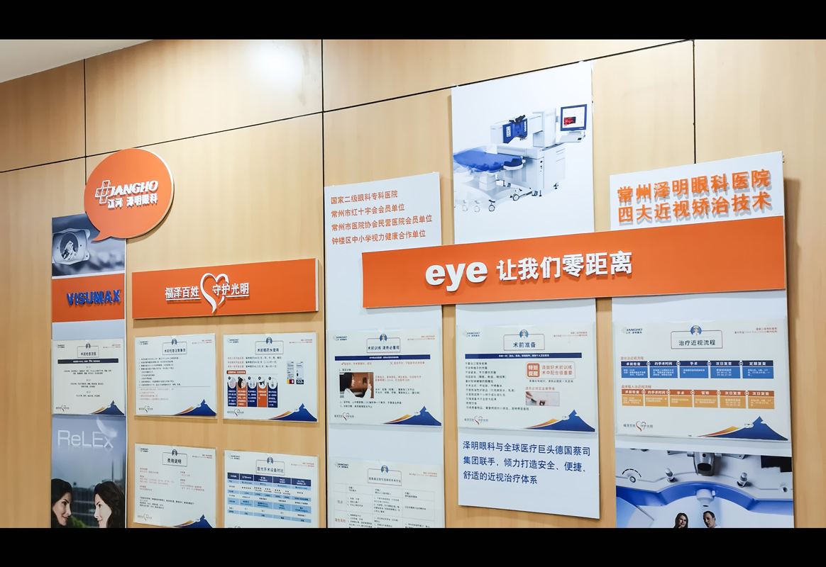 • 医疗健康:深度服务常州及全国眼科医院(如泽明眼科、维视眼科、海维视眼科、ICL、威沃视光、明基眼科、华厦眼科等)、牙科诊所及体检机构(幸元汇、瑞慈体检等),擅长眼科文化墙、摘镜打卡墙、专家墙、科普展厅及导视系统设计,用空间传递医疗温度。